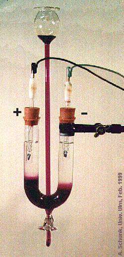 elektrolysieren. Die negativ geladenen Permanganat-Ionen wandern zur Anode